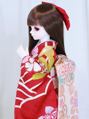 (特 徴)赤い本紋柄の地紋に桜、菊、牡丹などが描かれた可愛らしいお振袖です。