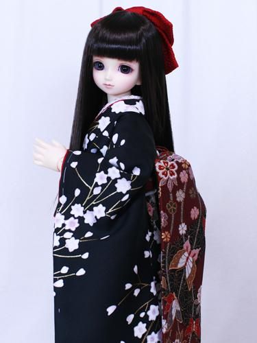 「mk-0186 裾引き振袖 枝垂れ桃 黒」のお振袖に合わせています。