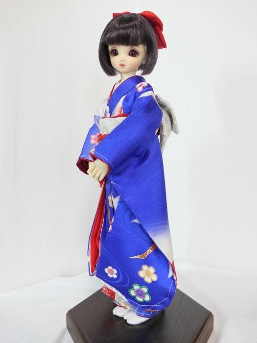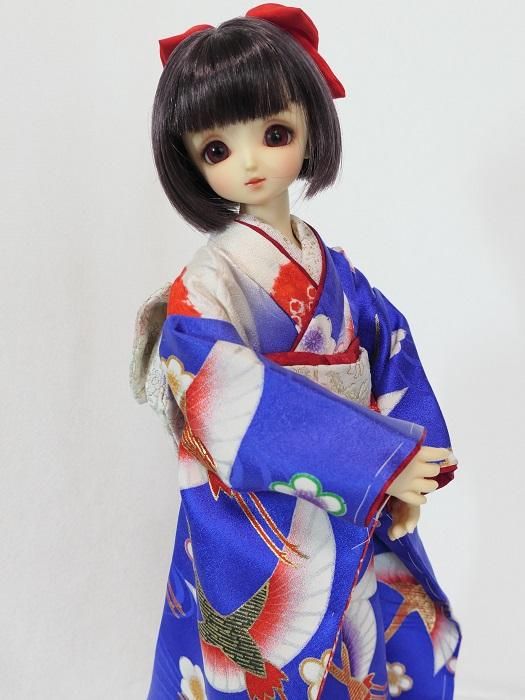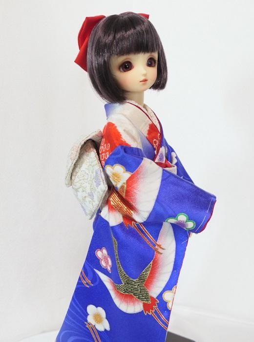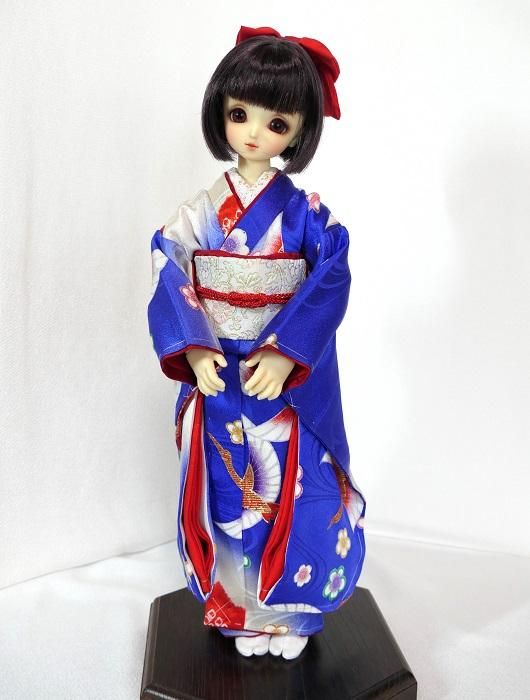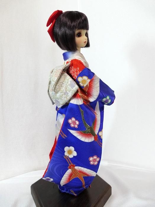 鮮やかな瑠璃色に沢山の飛鶴が描かれて華やかなお振袖です。